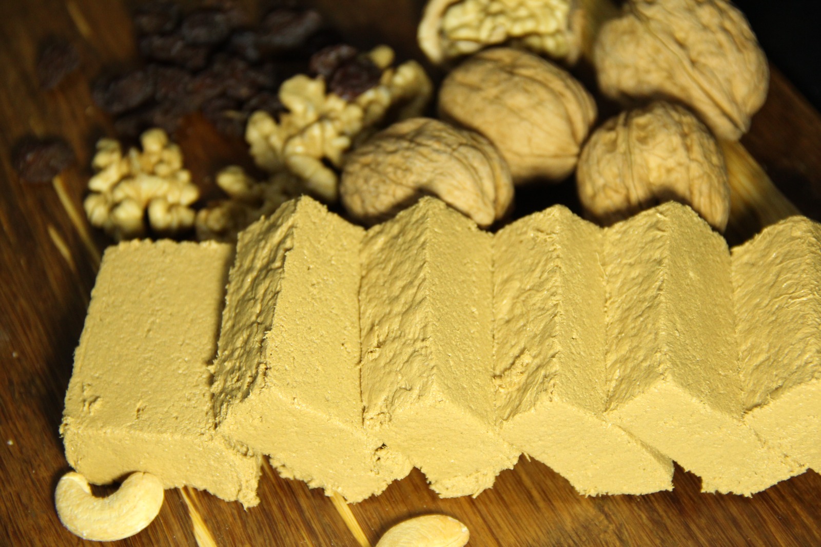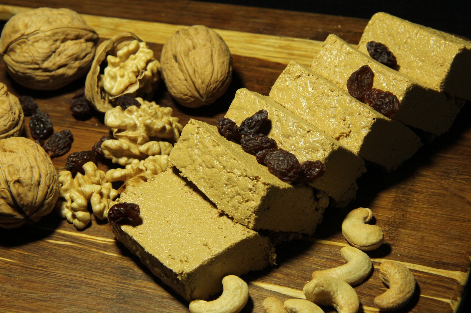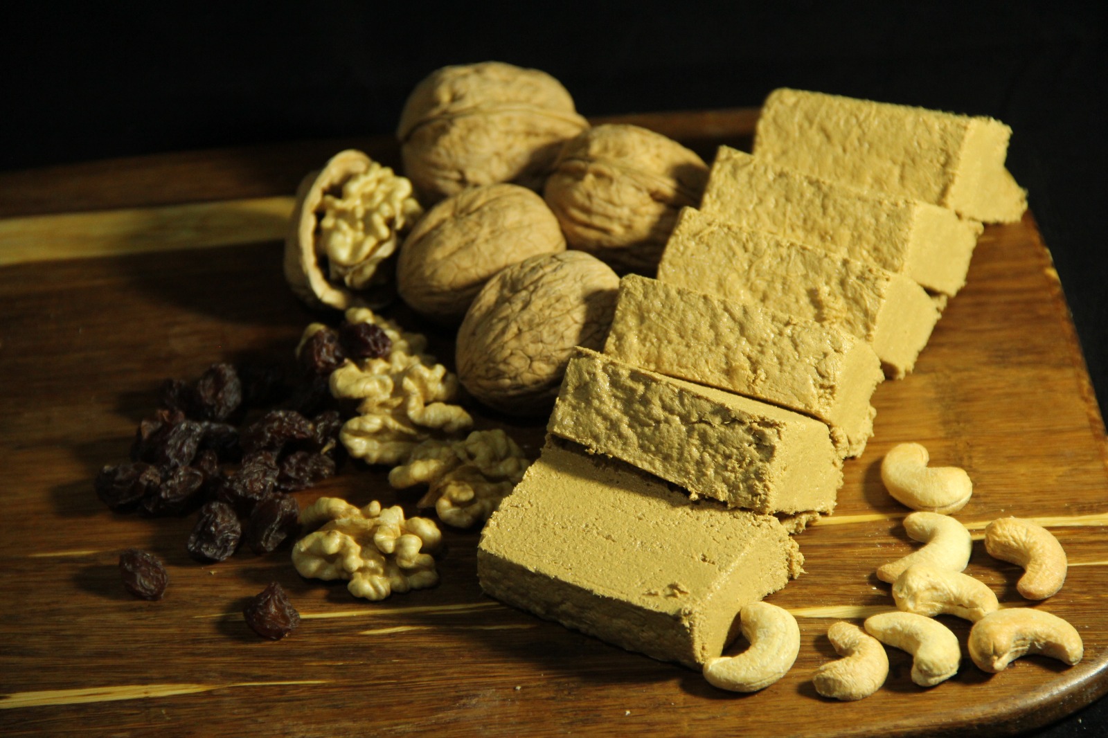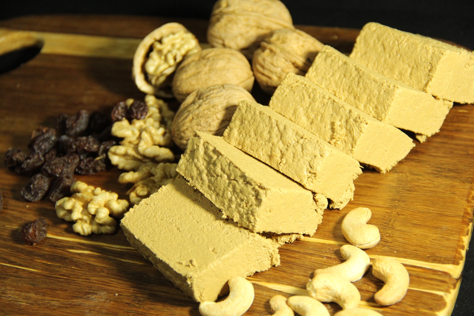 Ermenek helvasının özel tadı, yöreye özgü malzemeler ve geleneksel üretim yöntemlerinden gelir. Kuru üzüm pekmezi, tahin ve çöven otu kullanılarak hazırlanan helvanımız, modern beslenme anlayışına uygun olarak şekersiz üretilmektedir.