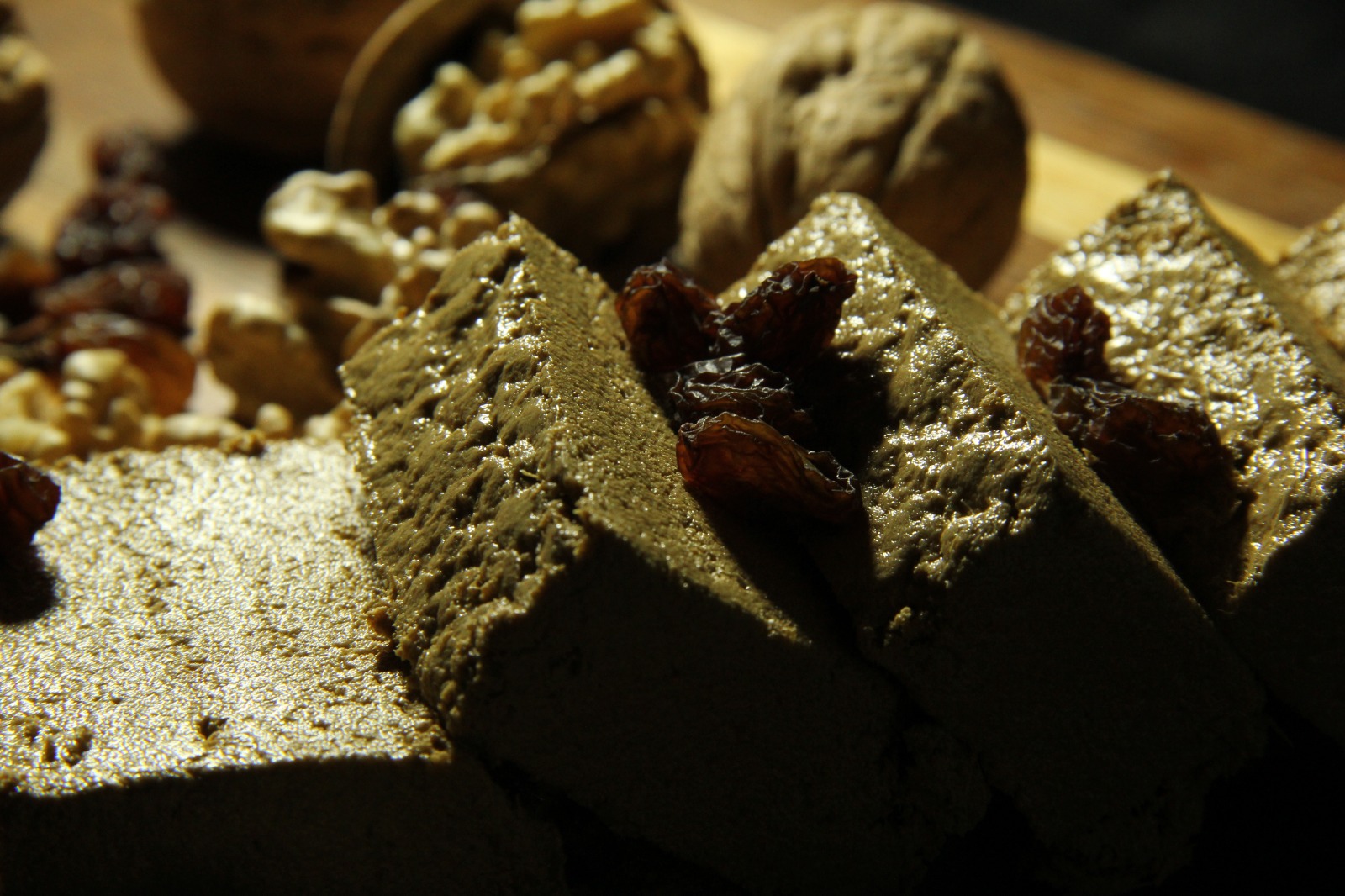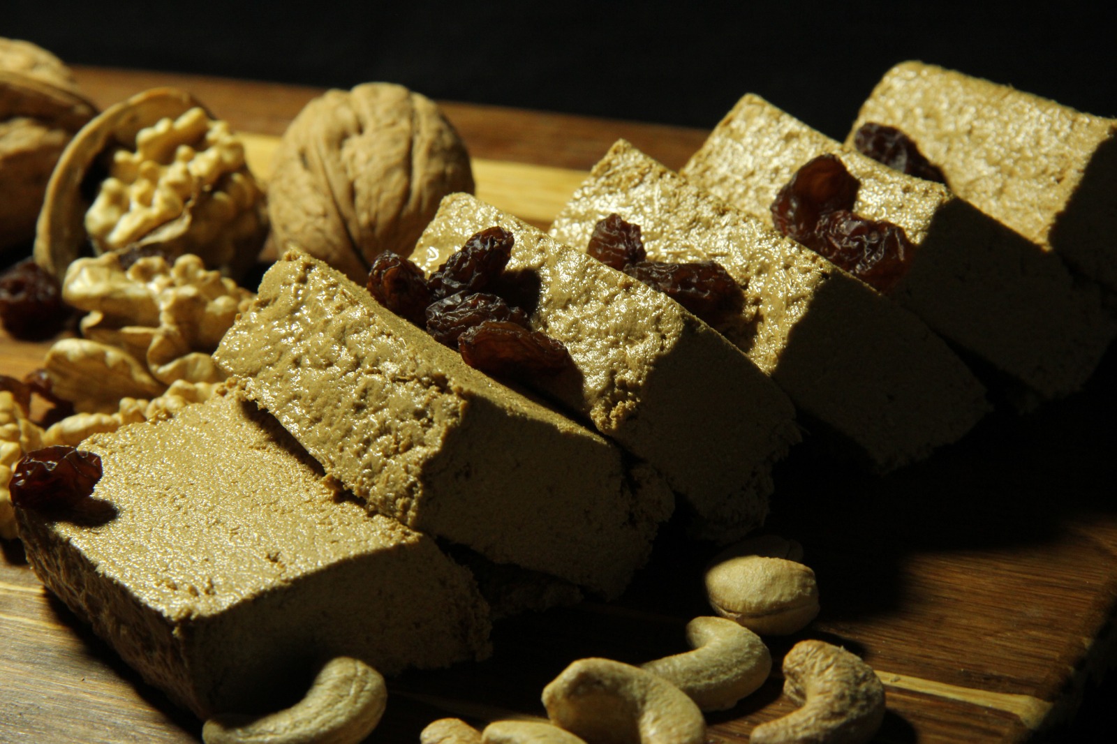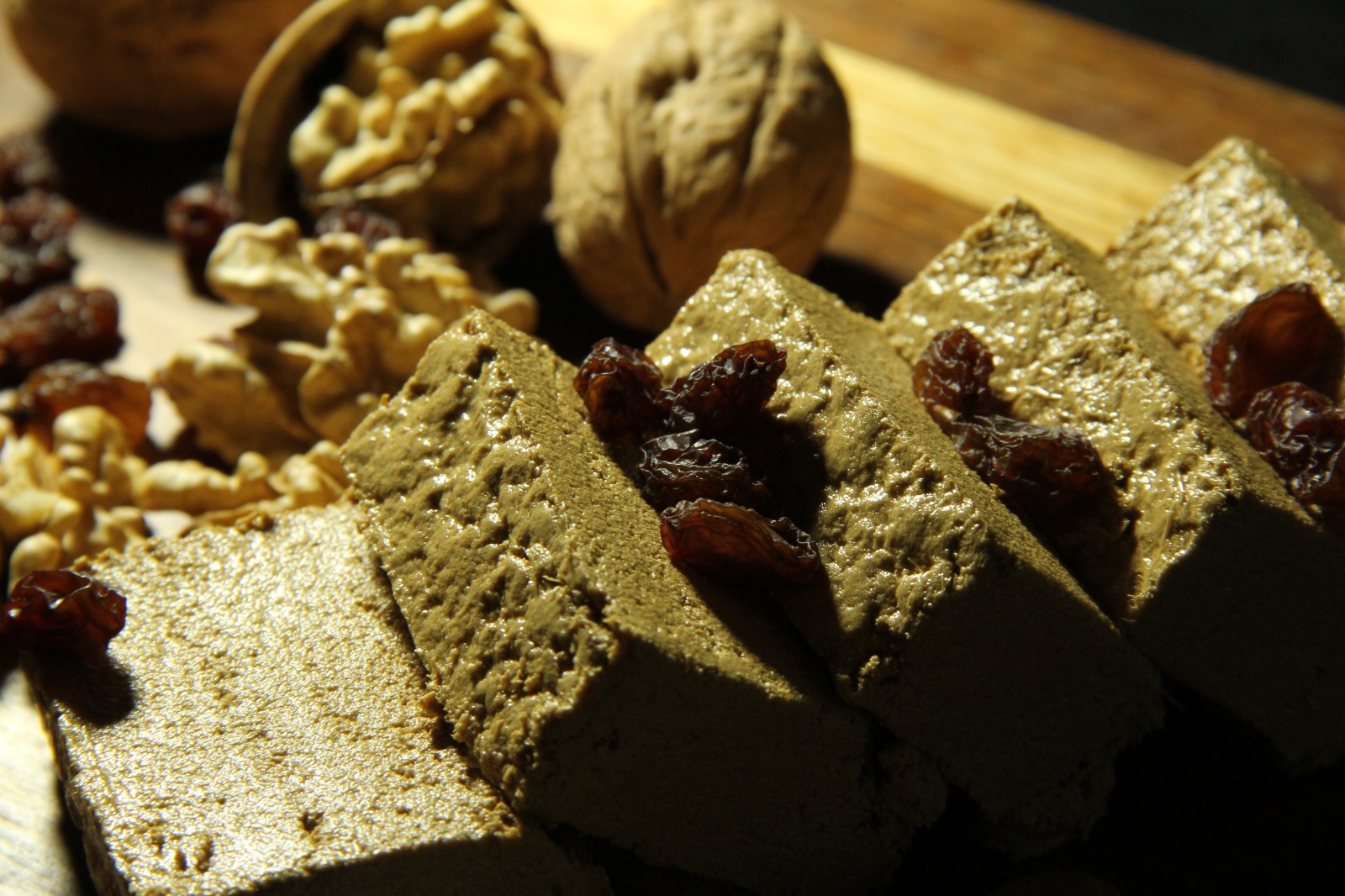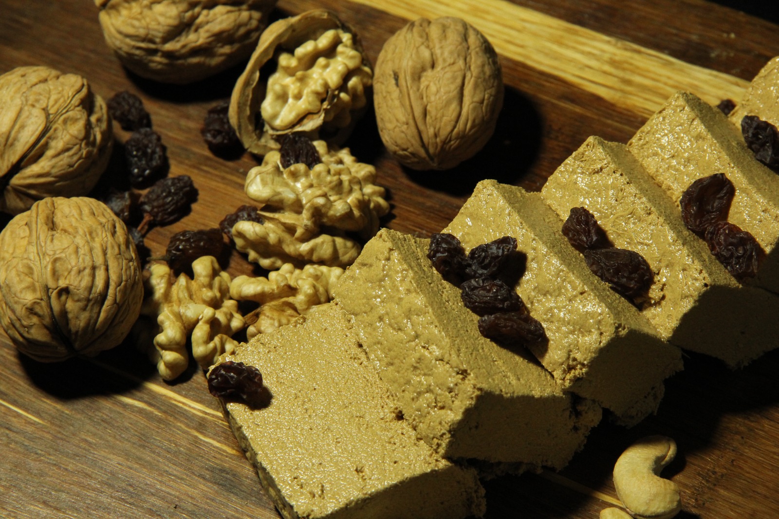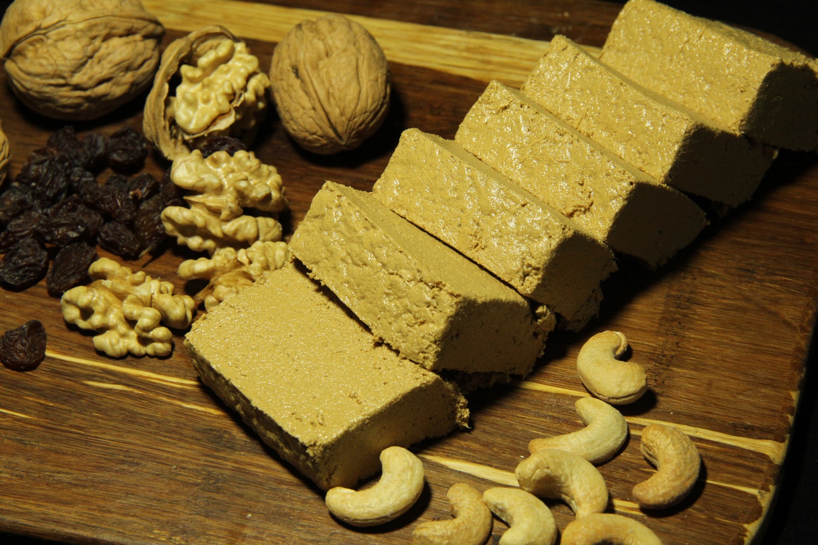 Ermenek helvasının özel tadı, yöreye özgü malzemeler ve geleneksel üretim yöntemlerinden gelir. Kuru üzüm pekmezi, tahin ve çöven otu kullanılarak hazırlanan helvanımız, modern beslenme anlayışına uygun olarak şekersiz üretilmektedir.